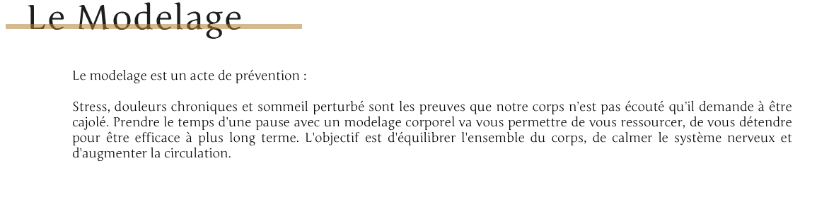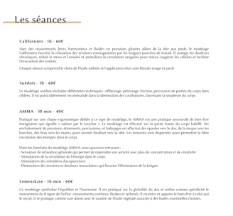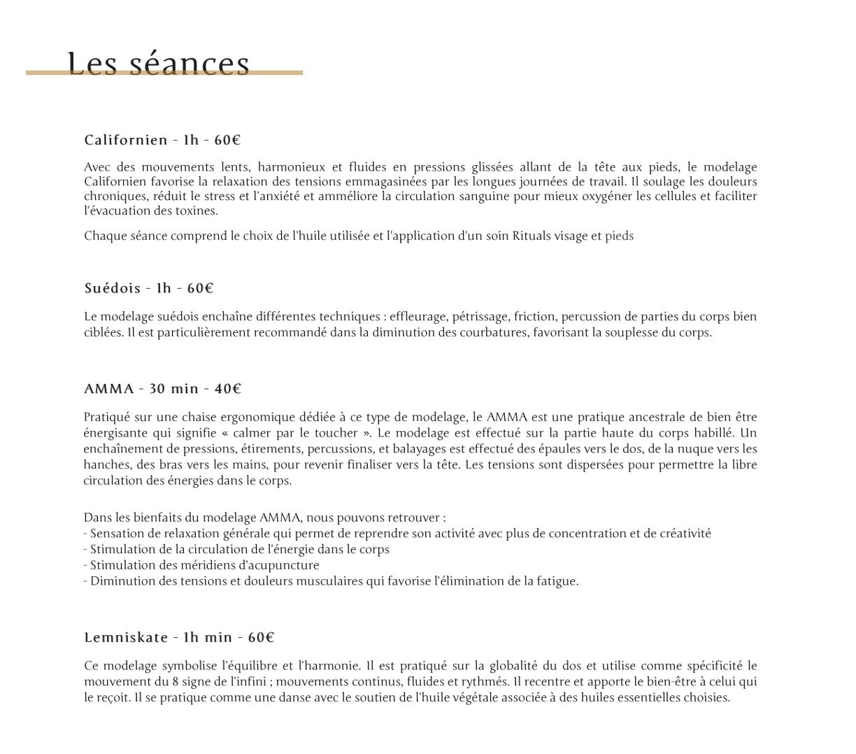 *Les modelages ont pour objectif le bien-être de la personne. Ils sont non thérapeutiques, et non sexuels.